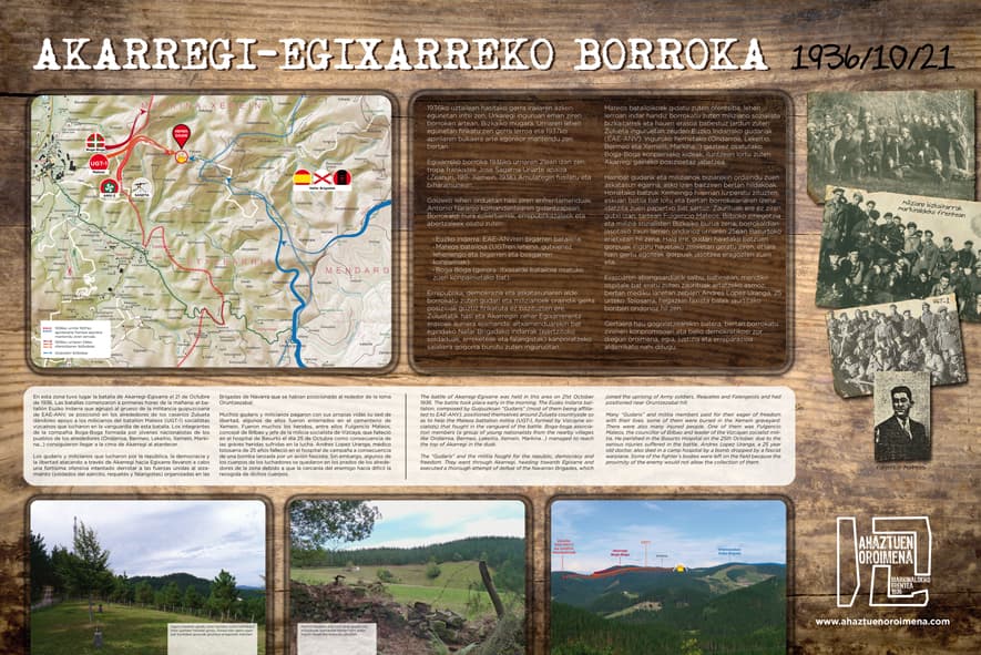 1936-10-21eko borrokaldia egunsentian hasi zen Antonio Naranjo komandantearen gidaritzapean. Euzko Indarra (EAE-ANV), Mateos (UGTren lehena), Boga Boga (Itxasalde batailoia osatuko zuen konpainietako bat), Saseta metrailadorearen gudariak eta Arabakoak (EAJ), denak batera, Zuluetan hasi eta Akarregin zehar Egixarrerantz borrokan jardun zuten faxistak kanporatzeko asmoz.